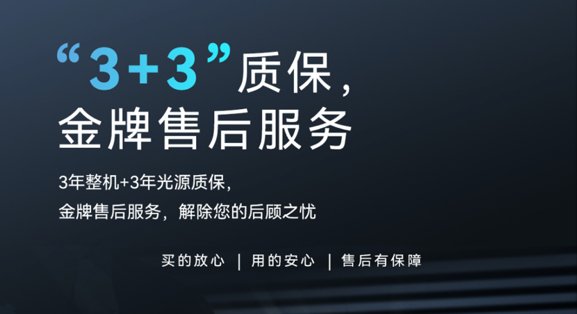 优异的品质和优质的售后服务是快盈·晨星系列投影机未来发展的有力保障,也是对每一位快盈·晨星用户的承诺。我们推出3年质保和“五星级”产品服务,为所有客户提供3年整机质保外加3年光源质保服务,真正做到让客户买的放心,用的安心。
