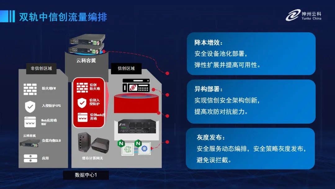 为满足数据中心双轨建设信创区和非信创区跨域协同,快盈通过5大引擎实现双区无缝切换,跨域协同。