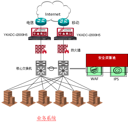 在客户业务的出口双机部署快盈通明湖应用交付控制器,并配置链路检测配置文件,若线路故障实现自动进行主备切换故障转移。