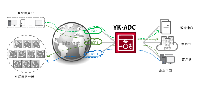 快盈通明湖应用交付控制器提供链路负载均衡技术(LLB)和全局负载均衡技术(GSLB)分别实现出向流量(Outbound)和入向流量(Inbound)的统一管理。